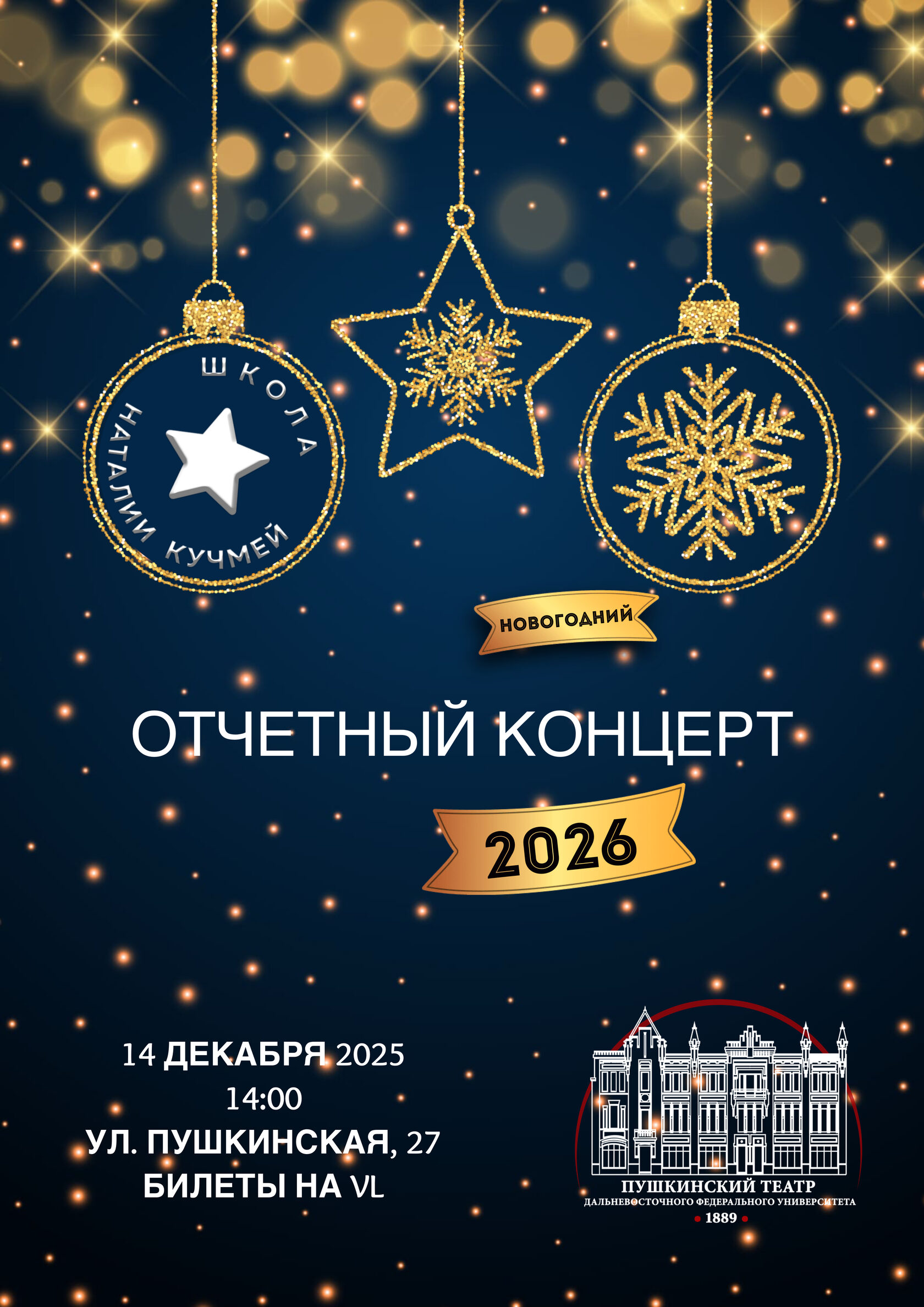 14 декабря в 14:00 на сцене Пушкинского театра, состоится новогодний отчетный концерт воспитанников Школы Наталии Кучмей